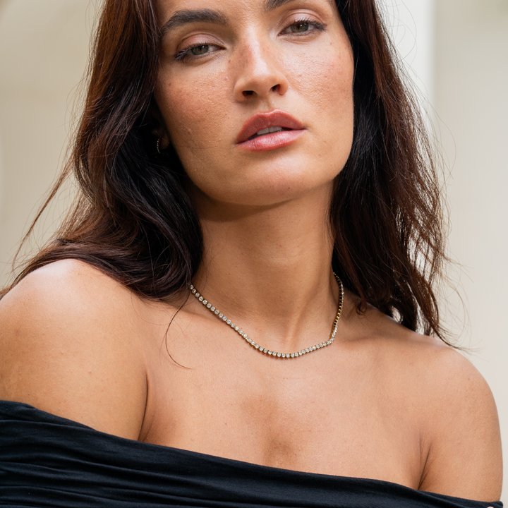 Tento kousek obsahuje brilantně broušené kameny z kubického zirkonu — bezchybnou alternativu diamantu, kterou milují stylisté a nosí ji celebrity pro její nepřekonatelný lesk a jas. Navrženo tak, aby napodobovalo lesk skutečných diamantů, je to tajemství za nesčetnými vzhledy z červeného koberce — nyní vaše, bez přirážky.