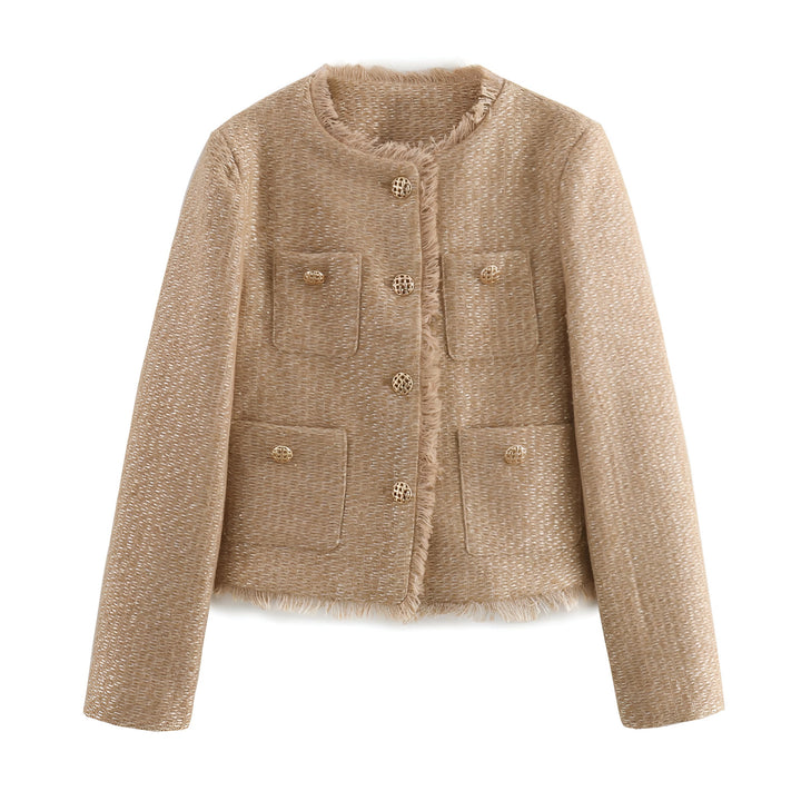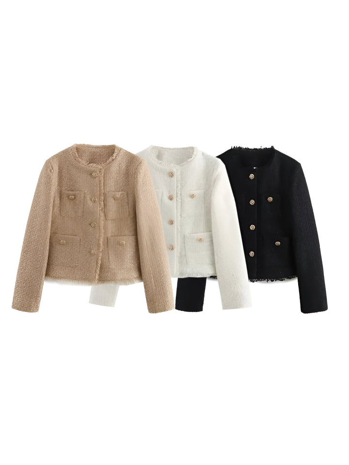 Diana tweed podzimní kabát vyzařuje klasickou eleganci s moderním nádechem. Jemný tweedový materiál dodává kabátu bohatou texturu a nadčasový charakter, zatímco úzké linie zajišťují stylový a ženský vzhled.