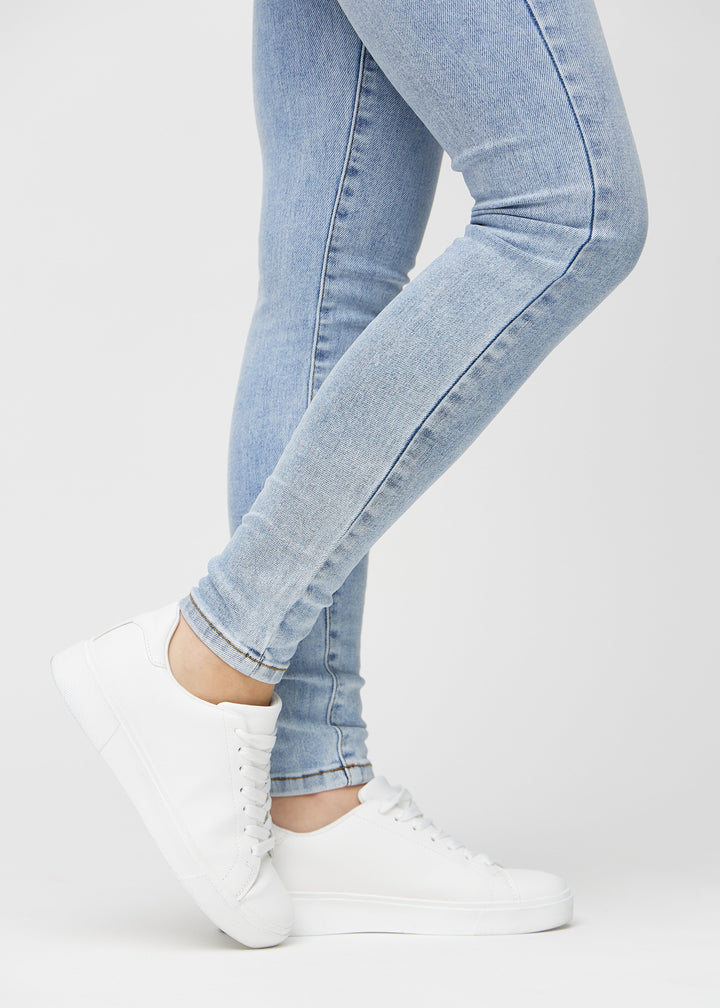 S Dokonalými Džínami - Skinny - Waves získáte dokonalé světle modré skinny džíny v denimovém vzhledu pro ženy. Vyvinuli jsme denim zcela novým způsobem s vysokou kvalitou a spoustou pohodlí. Zde získáte pár džínů se všemi detaily klasických denimových džínů, které jsou měkké a pružné. Naše světle modré denimové džíny jsou vysokého pasu a mají dvě hluboké kapsy jak vpředu, tak vzadu. Je to náš nejvíce přiléhavý styl, vyvinutý ve speciálním tkaní, které zajišťuje, že si udrží svůj tvar a barvu i po praní a používání.