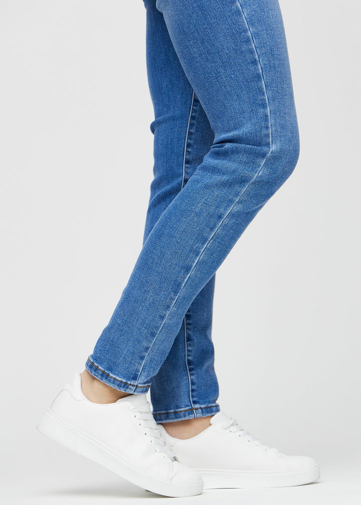 Naše dokonalé džíny - Slim - Rivers jsou ideální modré džíny pro ženy s krásným denimovým vzhledem. Vyvinuli jsme denim zcela novým způsobem, kde můžete zažít pohodlí a kvalitu s velkým množstvím pružnosti. Zde získáte všechny detaily klasického denimu, ale v nové formuli, která zajišťuje svobodu pohybu a zcela nový pocit pohodlí. Naše slim fit džíny pro ženy mají těsný střih, který zvýrazňuje vaše křivky. Jsou vysoké v pase a mají dvě hluboké kapsy, jak vpředu, tak vzadu. Náš modrý denim je vyvinut ve speciálním tkaní, které zajišťuje, že si udrží svůj tvar a barvu i po praní a používání.