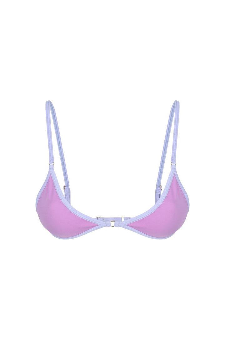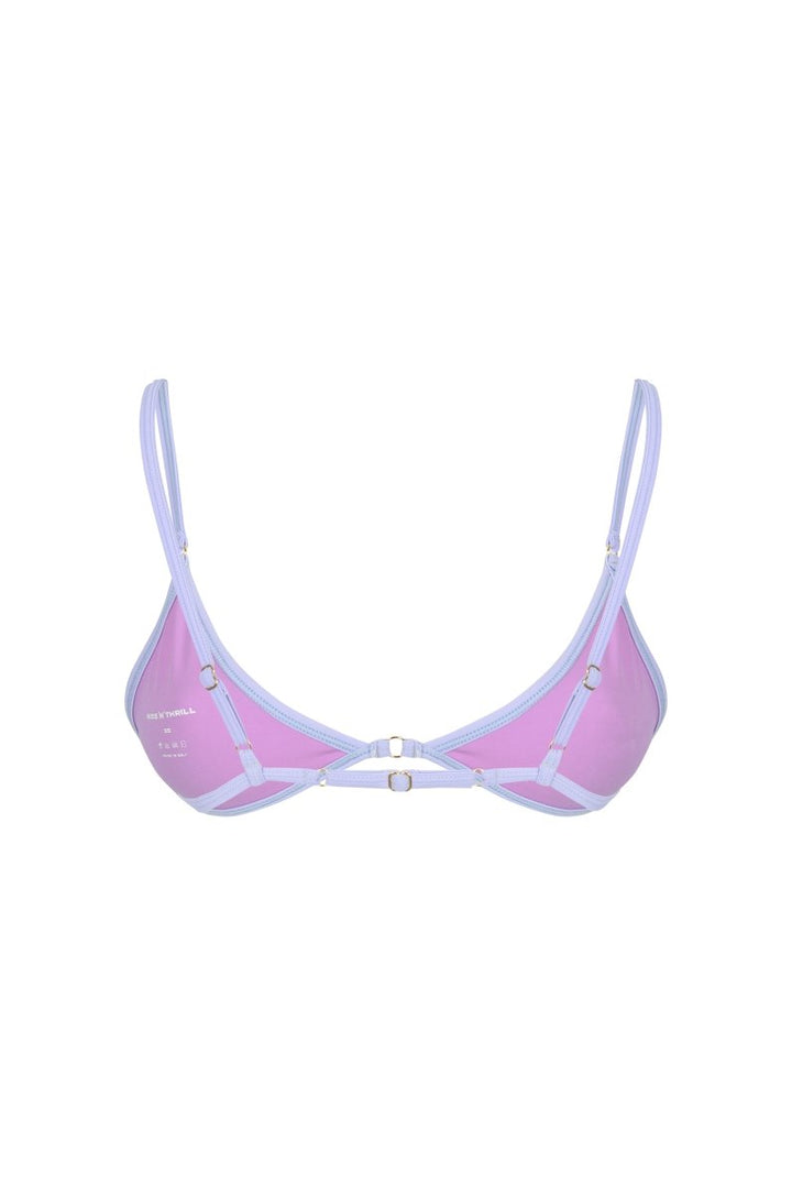 Top FRIDA v barvě fialové. Má sportovní a chic střih, zlaté kroužky a nastavitelné ramínka na ramenou a zádech.
