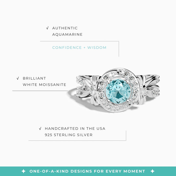 Graceful Bow Entwined Ring - Aquamarine