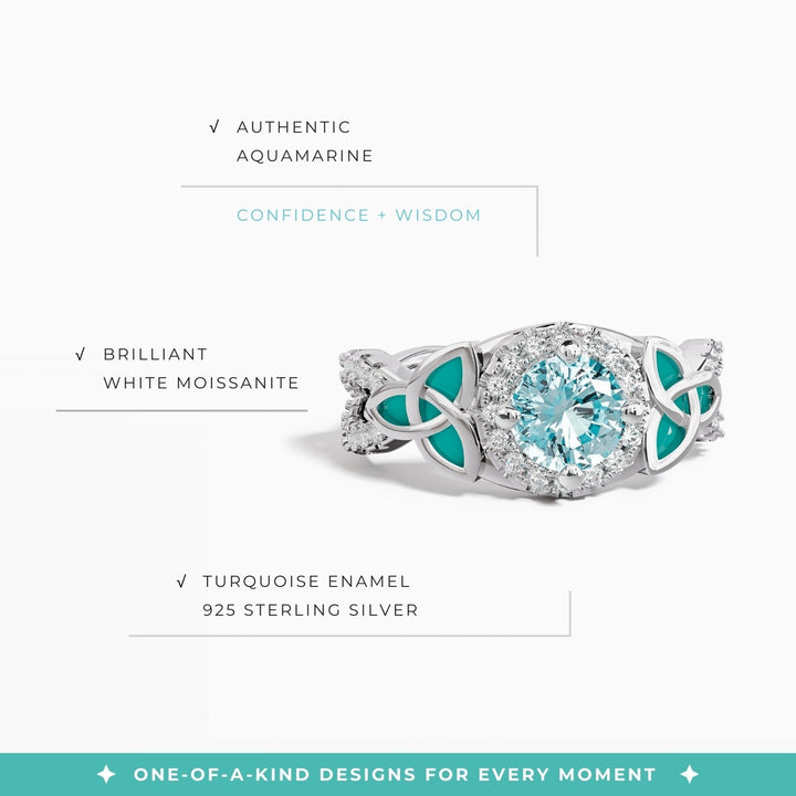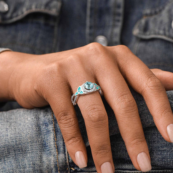 Interwoven Lucky Leaf Ring - Aquamarine