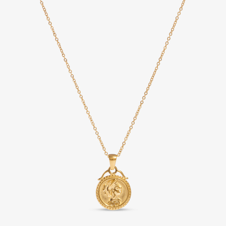 Přeměňte se na výjimečný kousek šperku s náhrdelníkem s mincí Elizabeth, zdobeným jedinečnými embosovanými detaily. Jeho embosované detaily ho činí jedinečným a pozvednou jakýkoli outfit s nádechem luxusu a elegance. Dopřejte si sofistikovanou krásu tohoto náhrdelníku a udělejte dojem, kamkoli půjdete.
