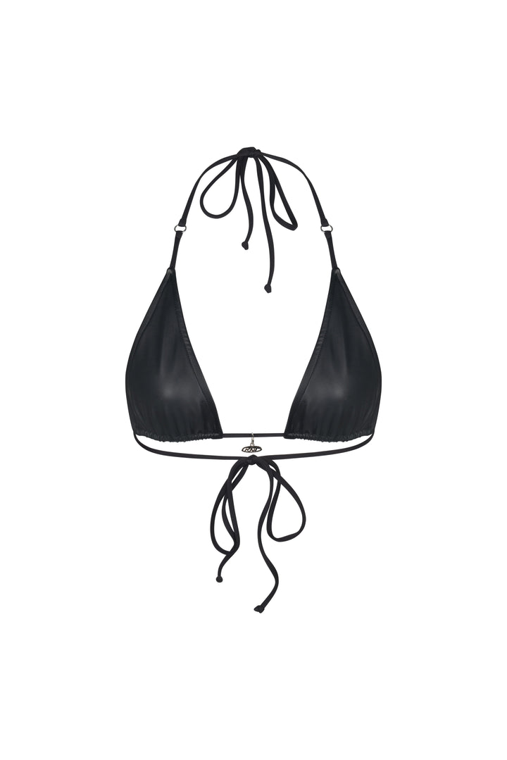 NAIIA top v naší speciální kůži pocit černé plavkové látky. Obsahuje trojúhelníkový střih se stříbrnými detaily a stříbrným logem. Je plně nastavitelný.