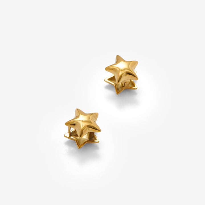 Dodajte svému outfitu nádech elegance a jiskření s našimi úchvatnými zlatými náušnicemi ve tvaru hvězdy. Tyto náušnice jsou dokonalým doplňkem pro každého, kdo chce zářit a cítit se jako pravá hvězda. Dokončete svůj vzhled a udělejte dojem s těmito krásnými náušnicemi.