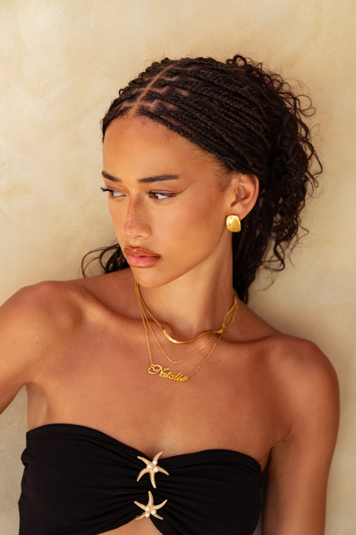 Přidejte osobní dotek svému stylu s personalizovaným náhrdelníkem se jménem. Vyrobený z vysoce kvalitních materiálů, tento jedinečný kousek lze přizpůsobit až 11 znaky, což vám umožní ukázat své jméno nebo významné slovo. K dispozici ve 18K pozlacené, stříbrné nebo růžově pozlacené nerezové oceli, je to stylový a univerzální doplněk pro každou příležitost.