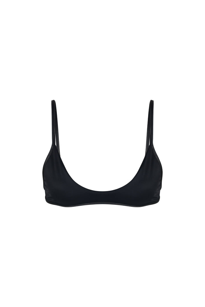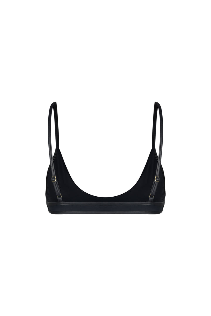 VENEDA top v černé barvě s okrajem s koženým vzhledem.