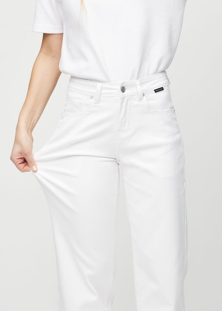 Perfect Jeans - Loose - Marguerites are the perfect white loose fit jeans for those seeking comfortable and comfortable white jeans. This model is our most relaxed fit, sitting snugly at the hips and loose around the thigh and calf. Here, you get a loose fit with plenty of room in the legs, ensuring full mobility in your everyday life, both in leisure time and at work. The jeans are high-waisted and have two deep pockets both in the front and back. Our white loose fit jeans for women are developed with a special weaving that makes them non-transparent and maintains their color wash after wash.