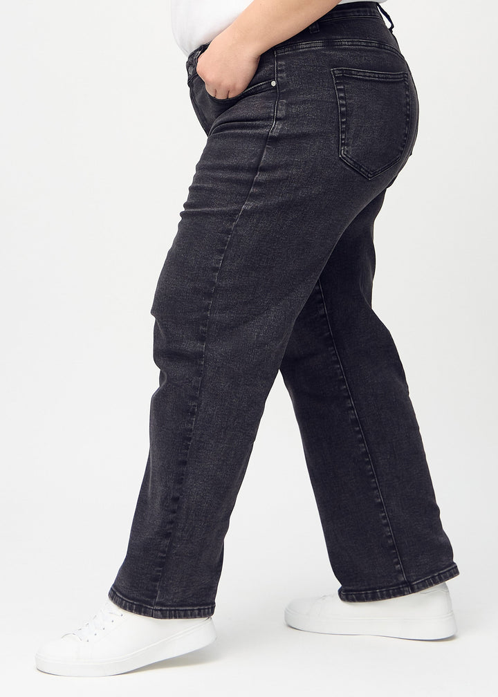 With Perfect Jeans - Loose - Shadows, you get the perfect loose-fitting dark grey jeans for women in a beautiful denim look. We’ve developed denim in a whole new way, with all the details of classic denim, but with plenty of stretch and comfort. Loose fit is our most relaxed fit, sitting at the hips and loose around the thighs and calves. Here, you get a loose fit with plenty of width in the legs. The denim jeans are high-waisted and feature two deep pockets both in the front and back. They are crafted with a special weave that ensures they retain their color and shape after washing and wearing. The classic dark loose fit jeans for women are perfect for any occasion.