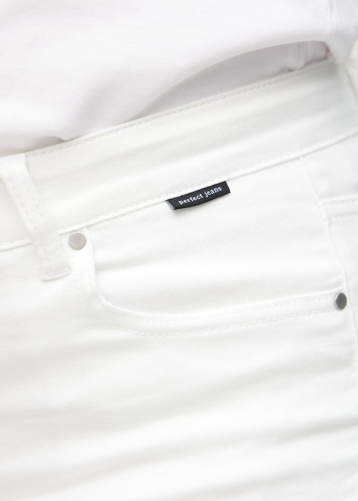 Perfect Jeans - Regular - Marguerites are the perfect white regular fit jeans for those seeking a pair of loose-fitting white jeans that are comfortable and comfortable. This model fits snugly around the waist and hips and is loose around the thigh, calf, and legs. Here, you get the loose fit that ensures full mobility in your everyday life. Our white regular jeans for women are developed with a special weaving that makes them non-transparent and maintains the color wash after wash.