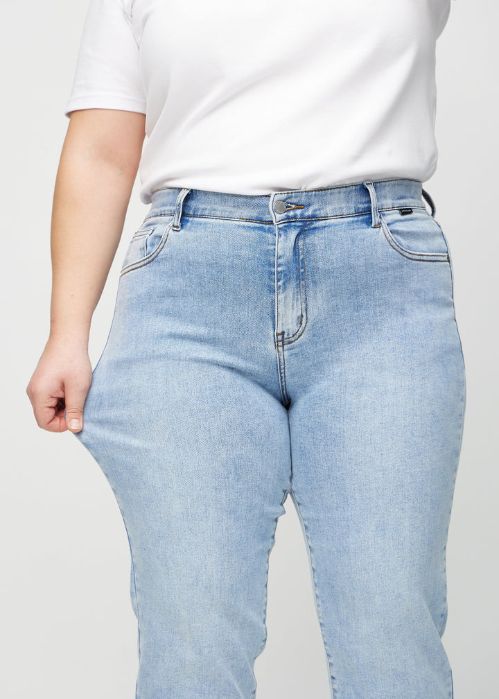 With Perfect Jeans - Regular - Waves, you get the beautiful light blue regular jeans for women in a unique denim look. We have developed denim in a completely new way, ensuring you freedom of movement and plenty of comfort. With our denim jeans, you get the classic denim look that is also soft, stretchy, and adapts to the body's natural curves. Our light denim jeans for women are high-waisted and have two deep pockets both in the front and back. They are developed with a special weaving that helps them maintain their shape and color after washing and wearing. The light blue denim jeans are suitable for any occasion, style, and preference.