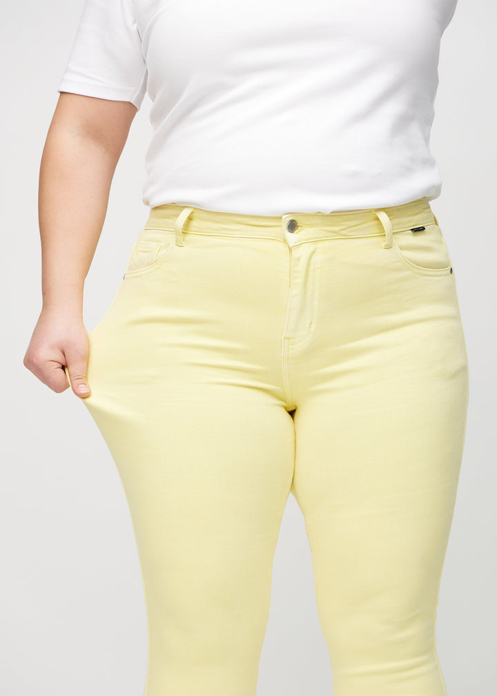 With Perfect Jeans - Skinny - Lemonades, you get the perfect yellow skinny jeans for women, which are stretchy, comfortable, and super soft. Our skinny jeans have the tightest fit, hugging from the waist down to the ankles without feeling restrictive. These yellow women's jeans are high-waisted and feature two deep pockets at the front and back. Skinny - Lemonades are perfect for anyone looking to add a bit of colour to their everyday wardrobe.