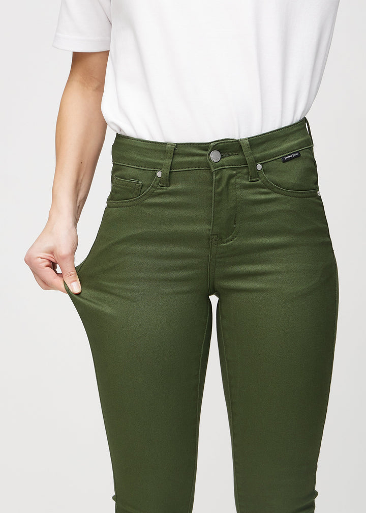 With Perfect Jeans - Skinny - Renewals, you get the perfect green jeans for women, featuring plenty of stretch and comfort. This model is our most form-fitting style, snug from the waist down to the ankles without being tight anywhere. Our jeans ensure mobility in everyday life. They are designed to be durable and retain their color and shape after washing and use. The beautiful dark green jeans are the perfect fit for those who want a bit of color in their everyday life.