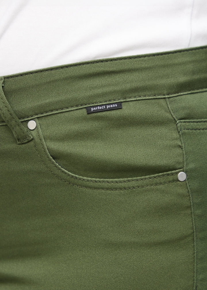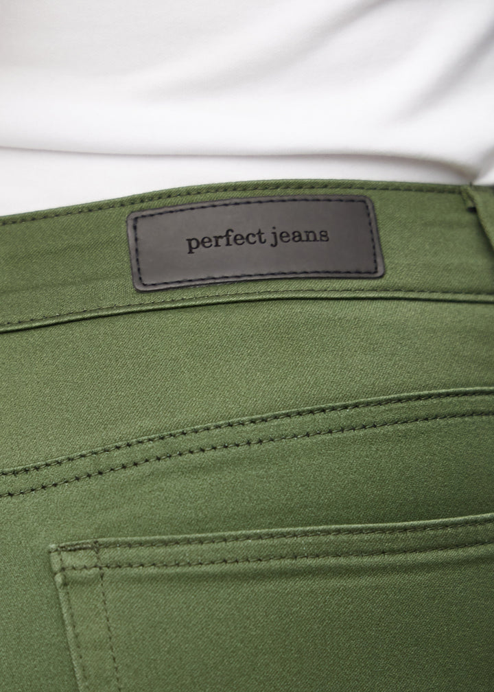 With Perfect Jeans - Slim - Renewals, you get the perfect green slim fit jeans for women with plenty of stretch and comfort. This model has a close-fitting cut that highlights your figure. Our slim jeans for women ensure freedom of movement throughout the day. They are designed to be long-lasting and retain their colour and shape after washing and wear. The beautiful dark green jeans are high-waisted and the perfect fit for anyone looking to add a touch of colour to their everyday wardrobe.